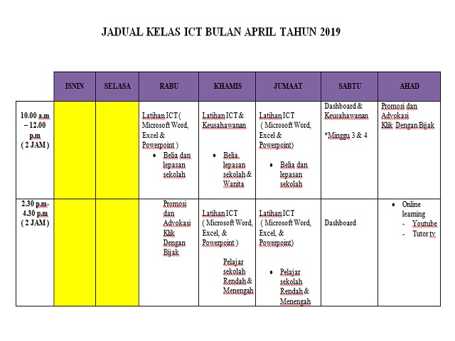 Jadual Aktiviti April 2019