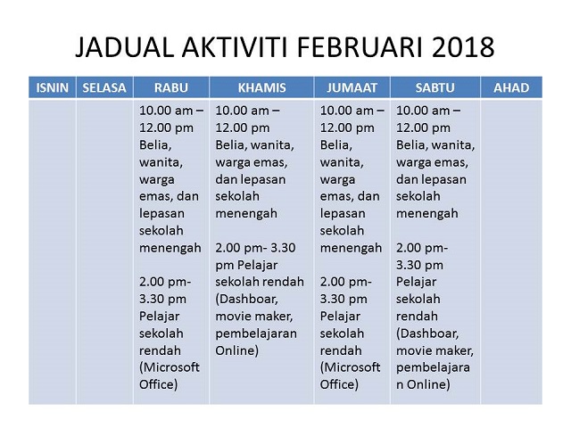 Jadual Aktiviti Februari 2018