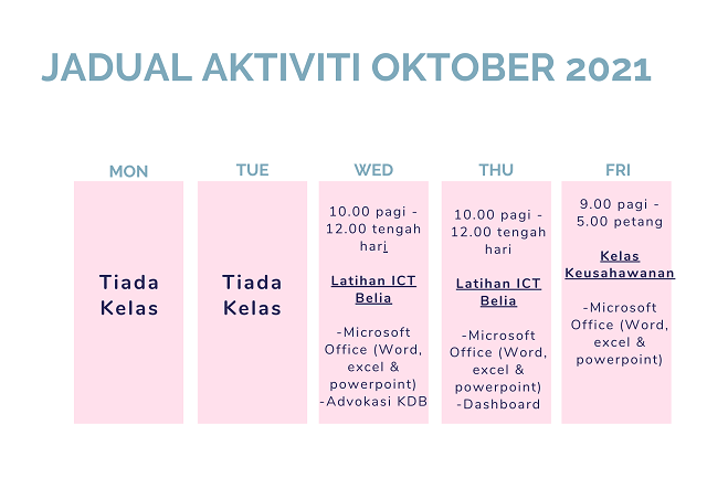 Jadual Aktiviti Oktober 2021